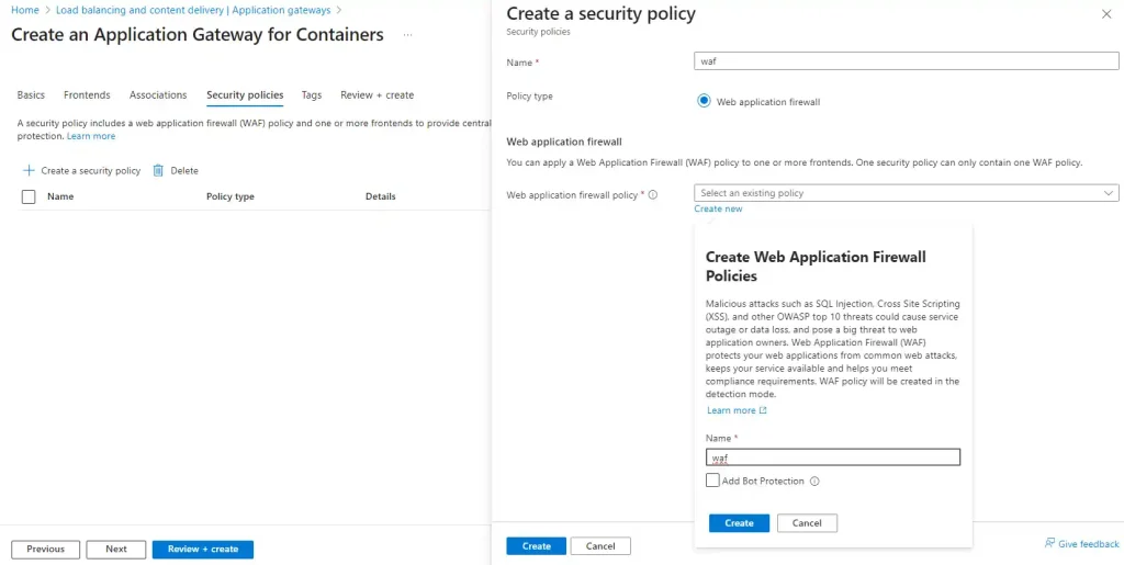 The Web Application Firewall on Application Gateway is seriously powerful. It uses OWASP Core Rule Set (CRS) to protect against common web vulnerabilities.