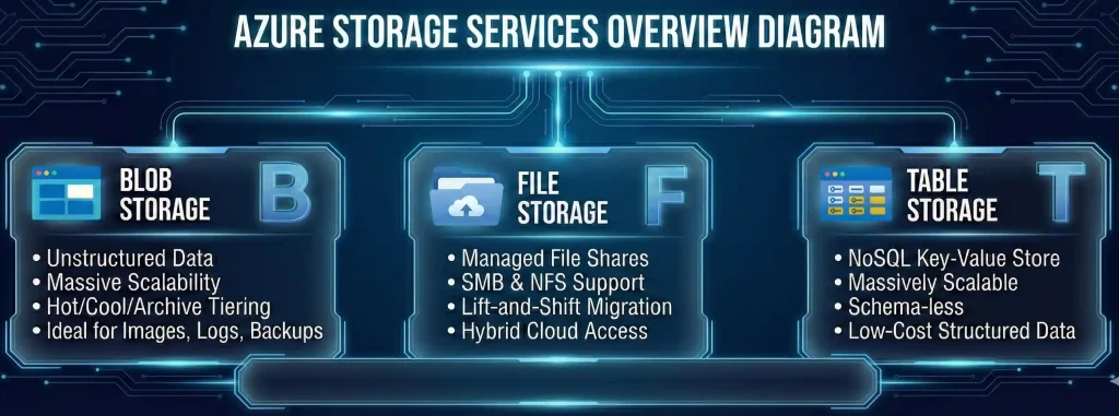 Azure gives you three main storage options under one roof. Each serves a different purpose. And understanding when to use what? That's the skill that separates okay cloud architects from great ones.