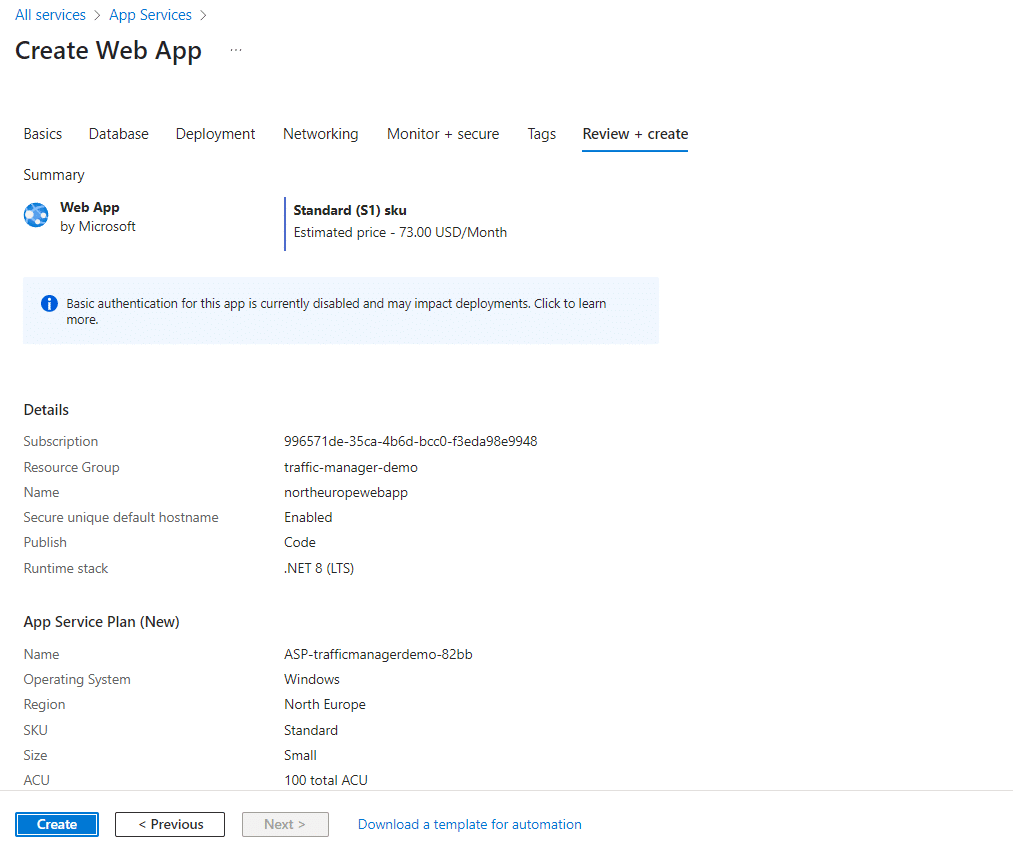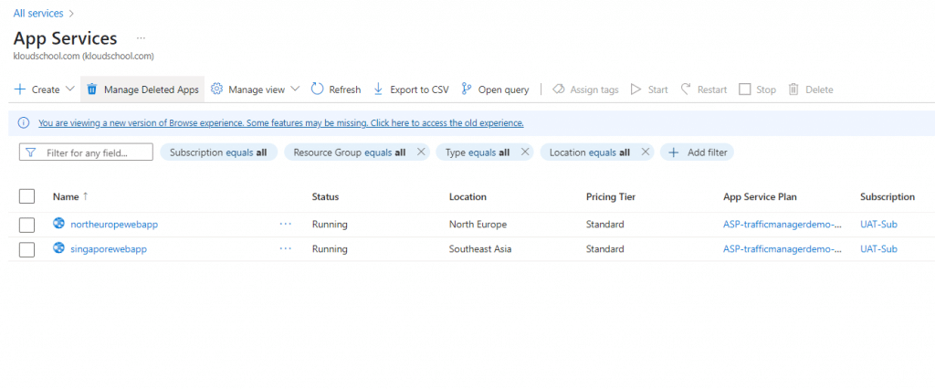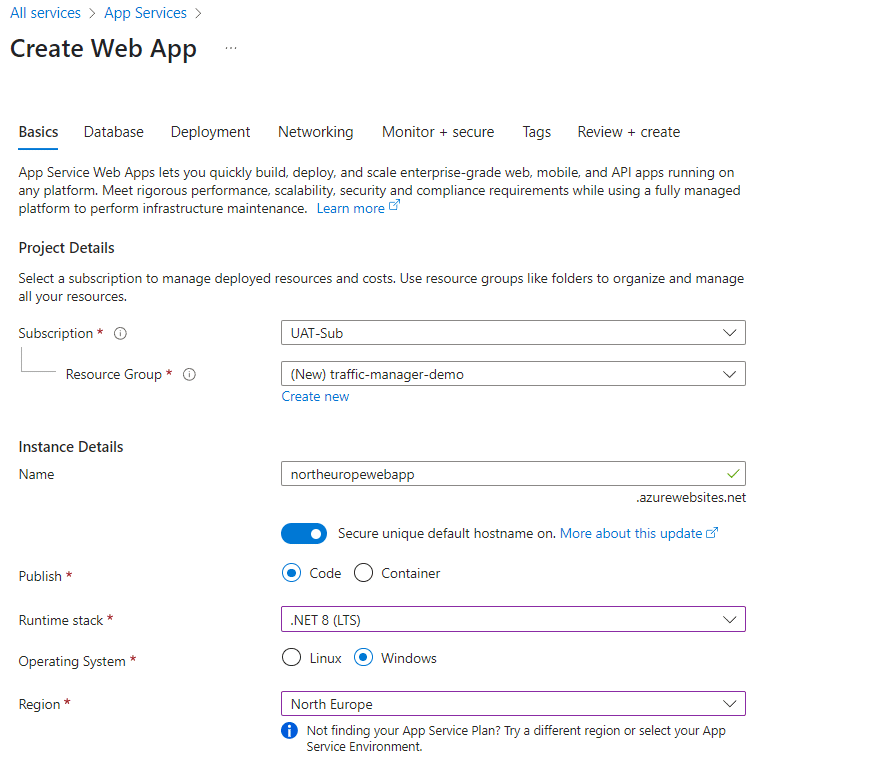 ☑️ Create Web apps in North Europe and South East Asia