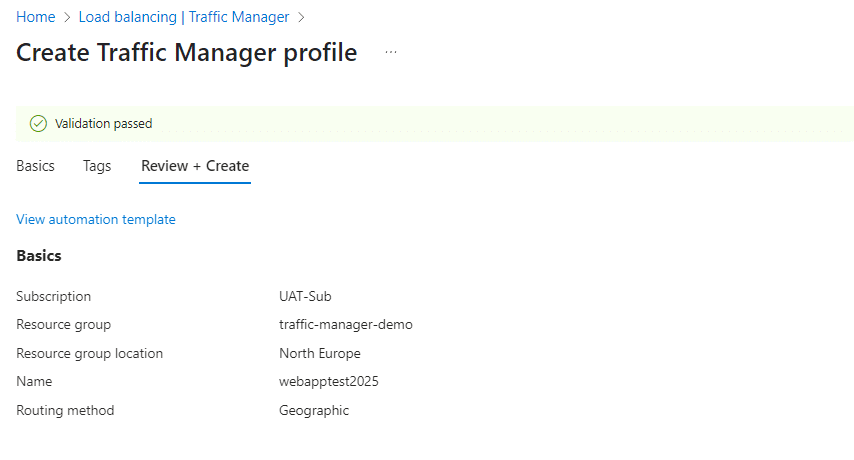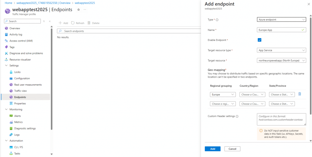 ☑️Create Traffic Manager using Geographic routing method