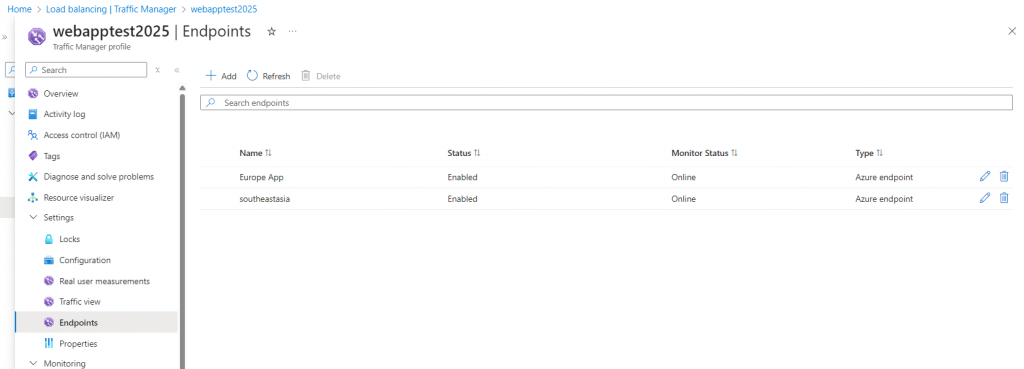 - Check endpoint health status in Azure Portal
