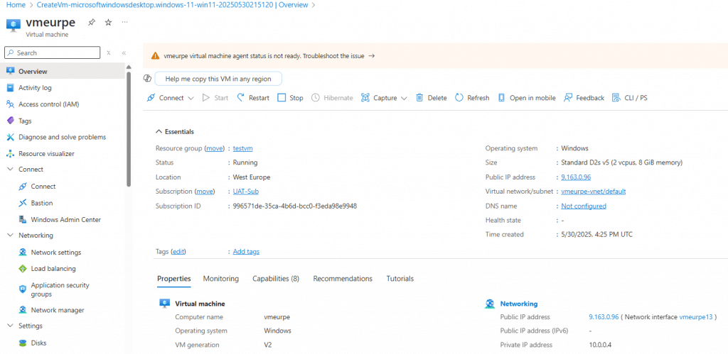I have already spin up Virtual machine on West Europe data center and i will use that Virtual machine for the access webapp.