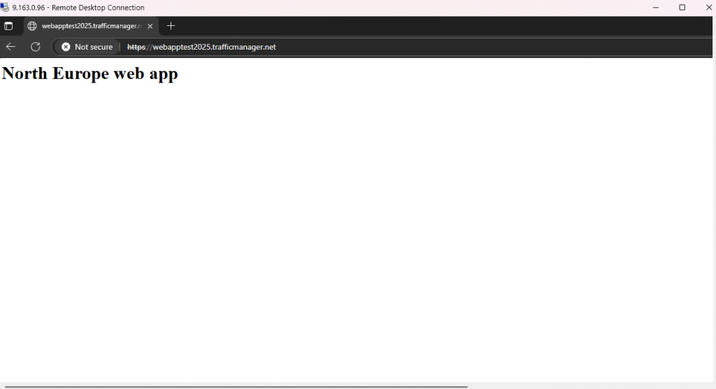 I tried to access the West Europe VM using the URL, but I can only see the web app running in North Europe.
