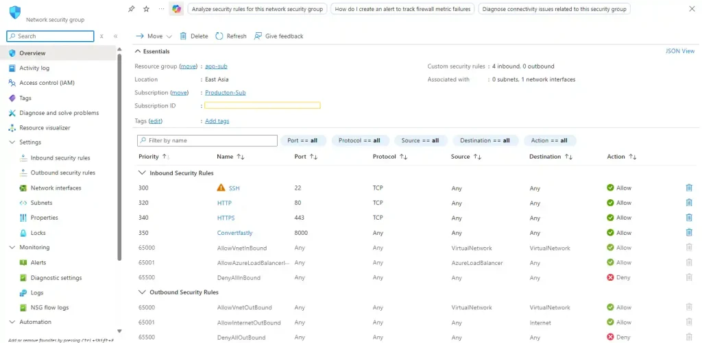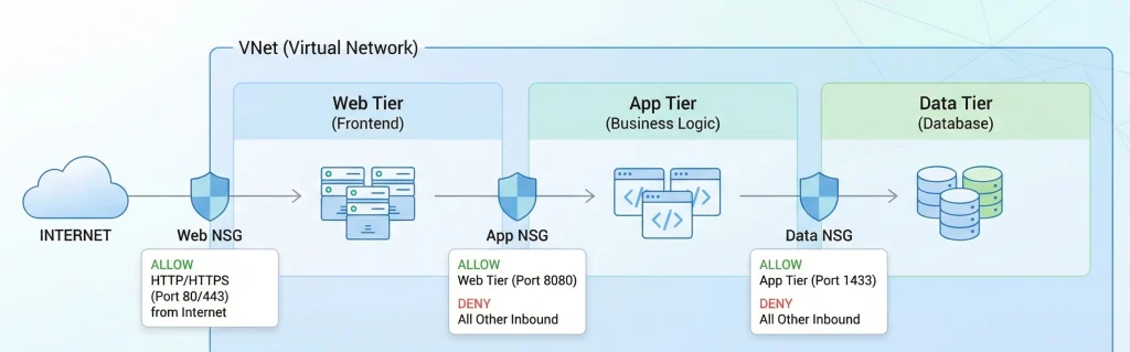 - Test before production: A misconfigured NSG can block legitimate traffic.