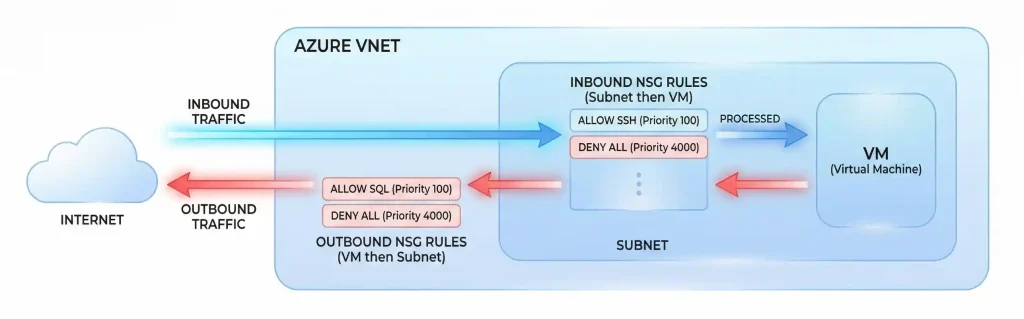 Understanding how traffic flows through NSGs is crucial. Let me break it down: