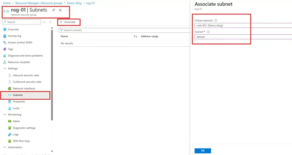 - Associate NSGs with subnets and/or NICs.