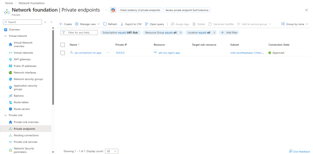 pls-main-office-nginx). - On the left menu, click Private endpoint connections.