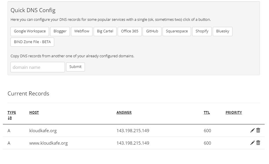 Logging to the DNS Provider and Point A records to the Server.