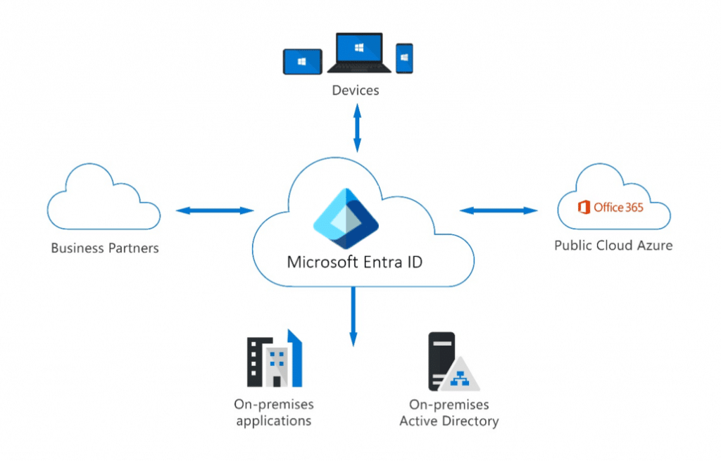 Microsoft Entra ID simplifies authentication and access management by delivering a single identity system for cloud and on-premises apps. Microsoft Entra ID can be synchronized with your current on-premises Active Directory, with other directory services, or as a stand-alone service.