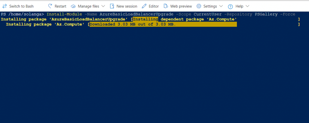 - Install-Module -Name AzureBasicLoadBalancerUpgrade -Scope CurrentUser -Repository PSGallery -Force
