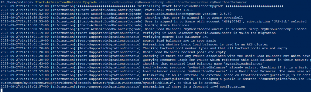 Once you're prepared, running the migration is surprisingly simple. The main command requires just the resource group and the name of your Basic Load Balancer.