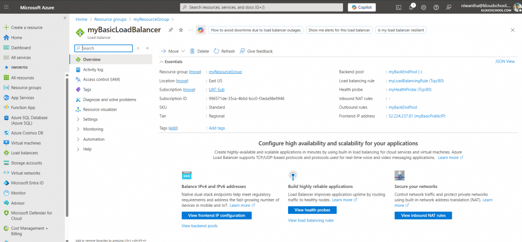 - Check the Azure Portal: Navigate to your resource group and confirm that the new Standard Load Balancer exists and the old Basic one is gone.